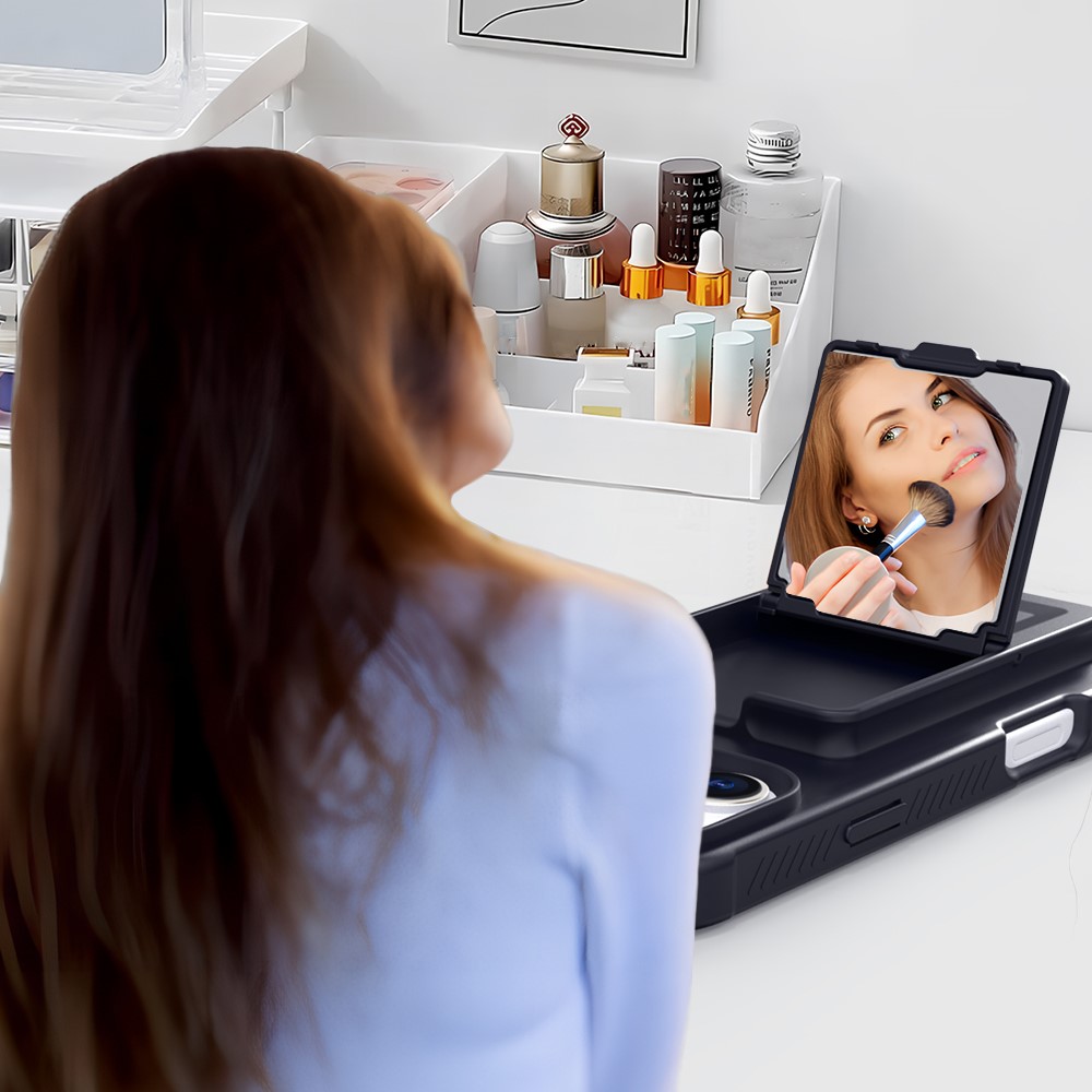 - Built-in Mirror Kickstand Features a high-definition mirror integrated into the card holder cover, perfect for on-the-go touch-ups and quick checks, it can also be used as a kickstand for convenient hands-free viewing