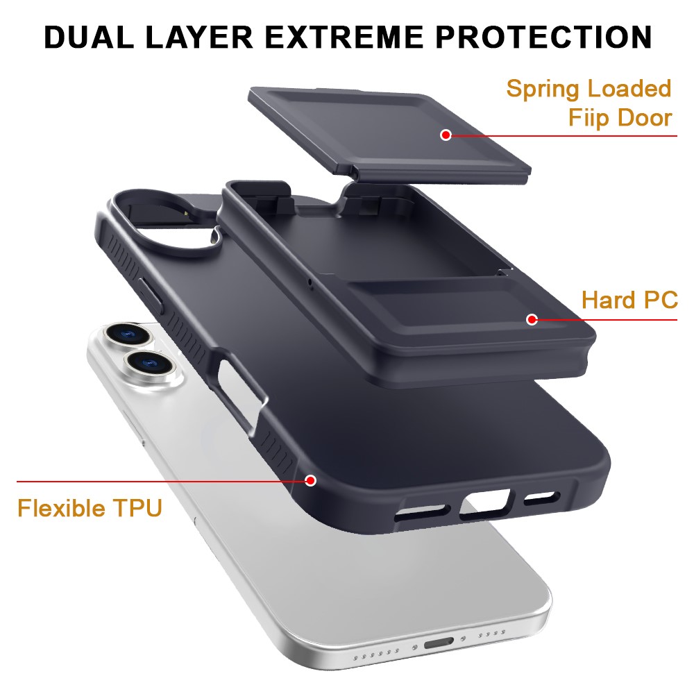 - Hidden Card Holder Includes a stylish and functional large capacity hidden card slot that conveniently holds 4-5 cards or folded money within the case