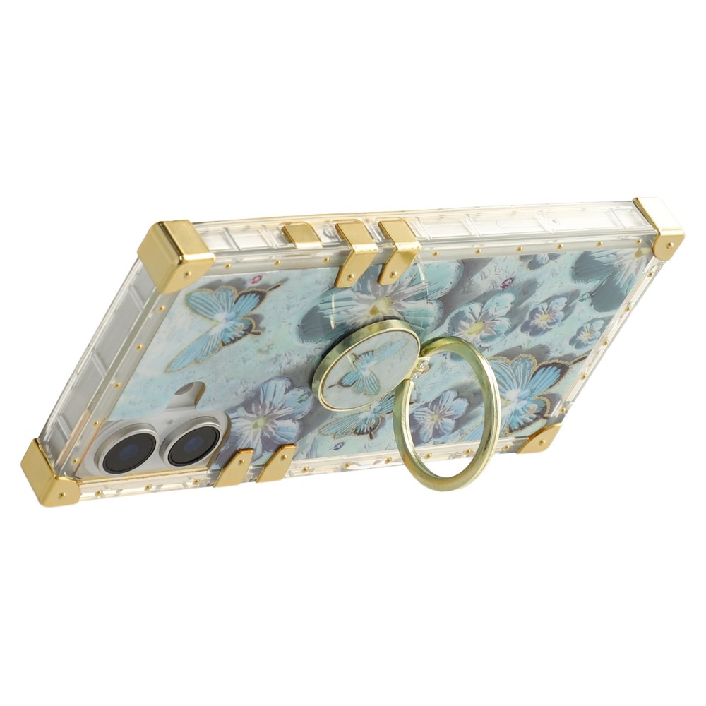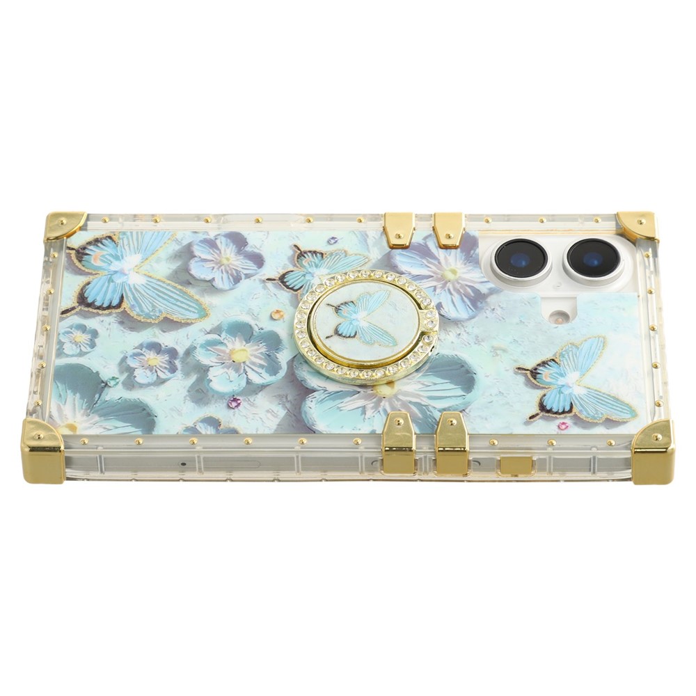 - Rhinestone Metal Ring Kickstand Decorated with sparkling rhinestones, the built-in metal ring kickstand allows for hands-free viewing and a secure grip.