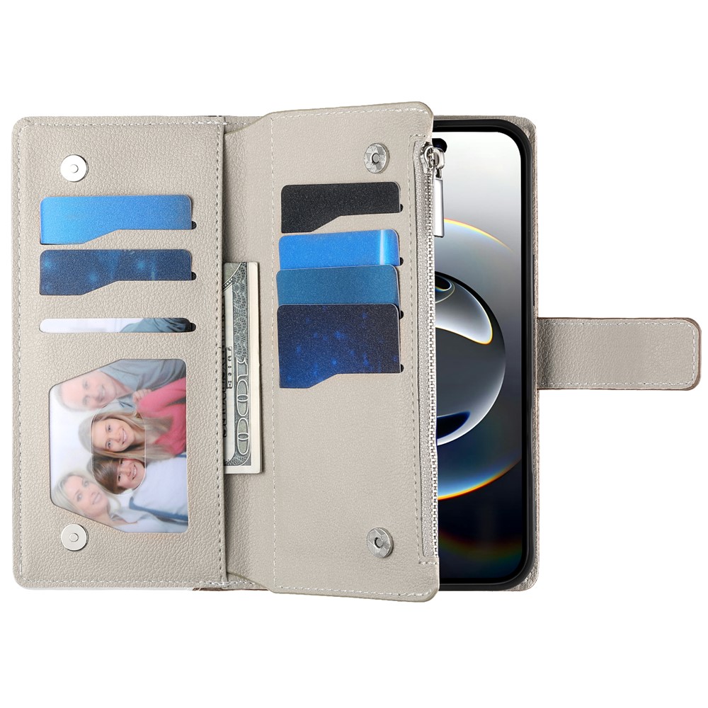 - Ample Storage Features two photo slots, six card slots, one wallet compartment, and an internal zippered pocket for coins. Store your ID, cards, cash, and coins securely