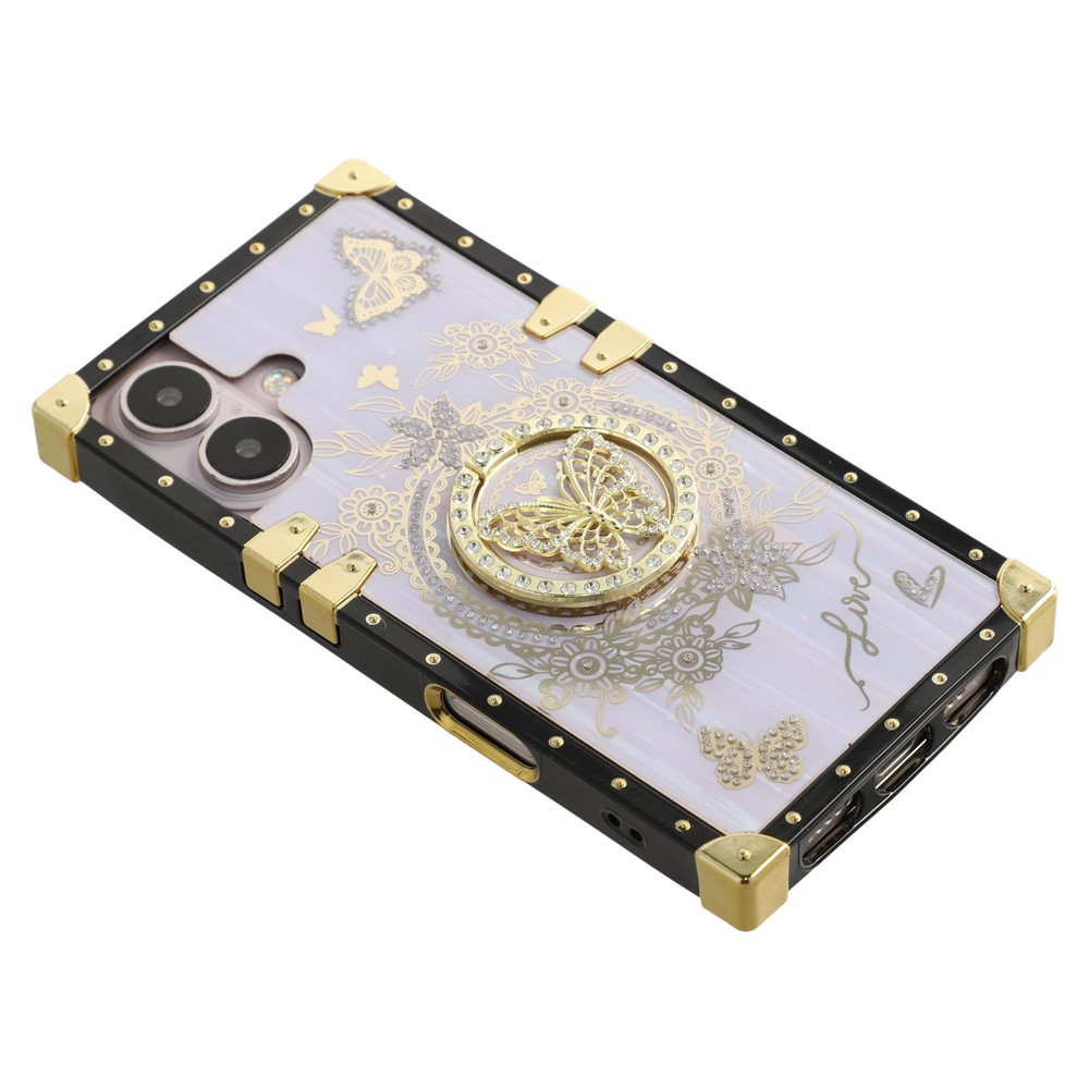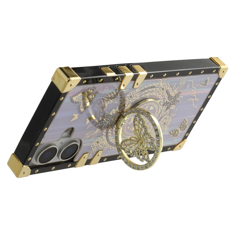 - Hands-Free Stand Equipped with a butterfly-shaped kickstand embellished with shiny rhinestones, allowing for comfortable hands-free viewing.
