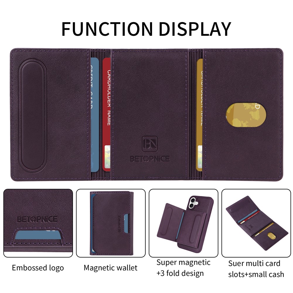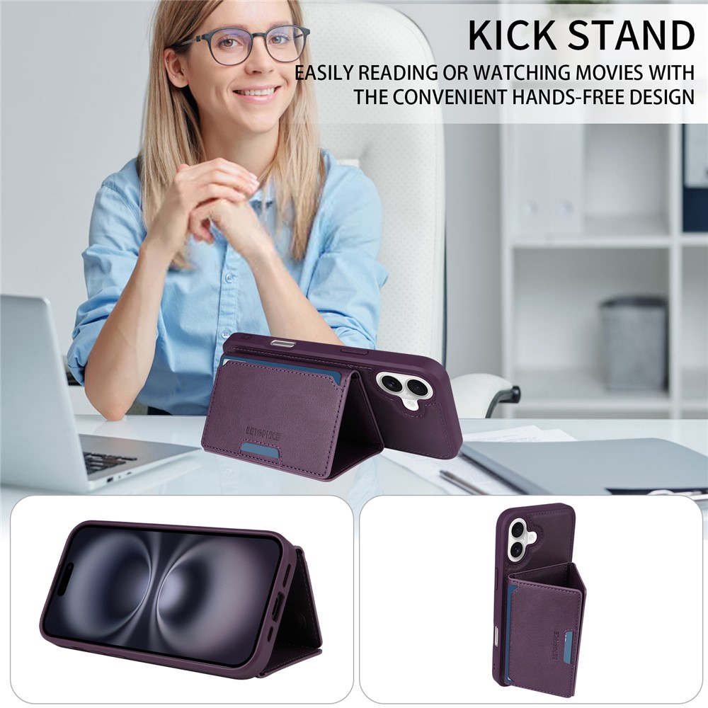For iPhone 16 Plus Magnetic Case BETOPNICE Leather Phone Cover Kickstand with Detachable Card Bag – Purple