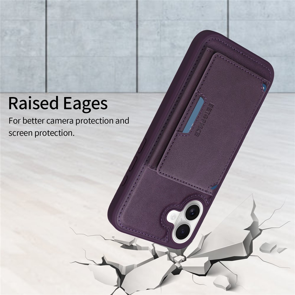 For iPhone 16 Plus Magnetic Case BETOPNICE Leather Phone Cover Kickstand with Detachable Card Bag - Purple