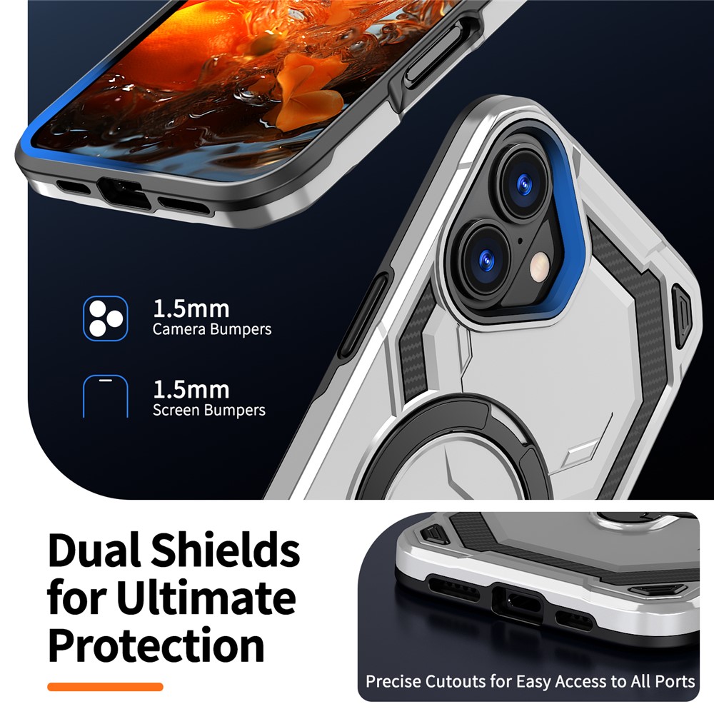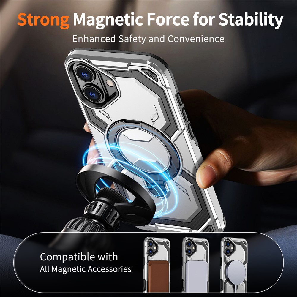 - Magnetic Ring Kickstand Features a magnetic ring kickstand for easy one-handed operation and doubles as a convenient phone kickstand for desktop or in-car use, enhancing versatility.