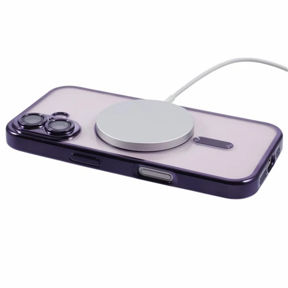 For iPhone 16 Plus Magnetic Case WANLONFENG Full Protection Electroplated TPU Cover with Tempered Glass - Dark Purple $13.88