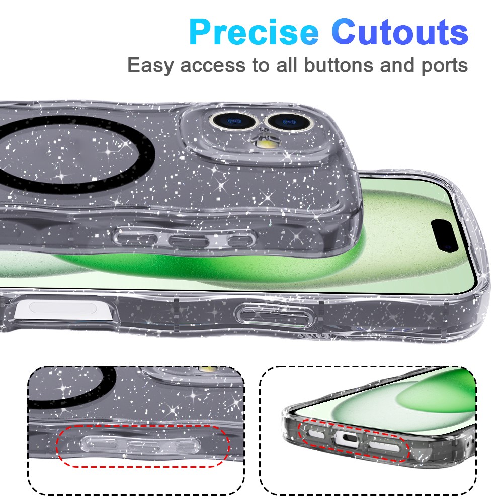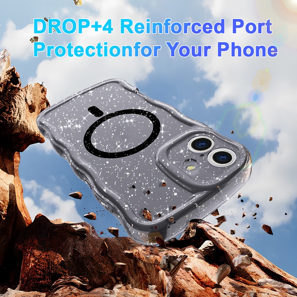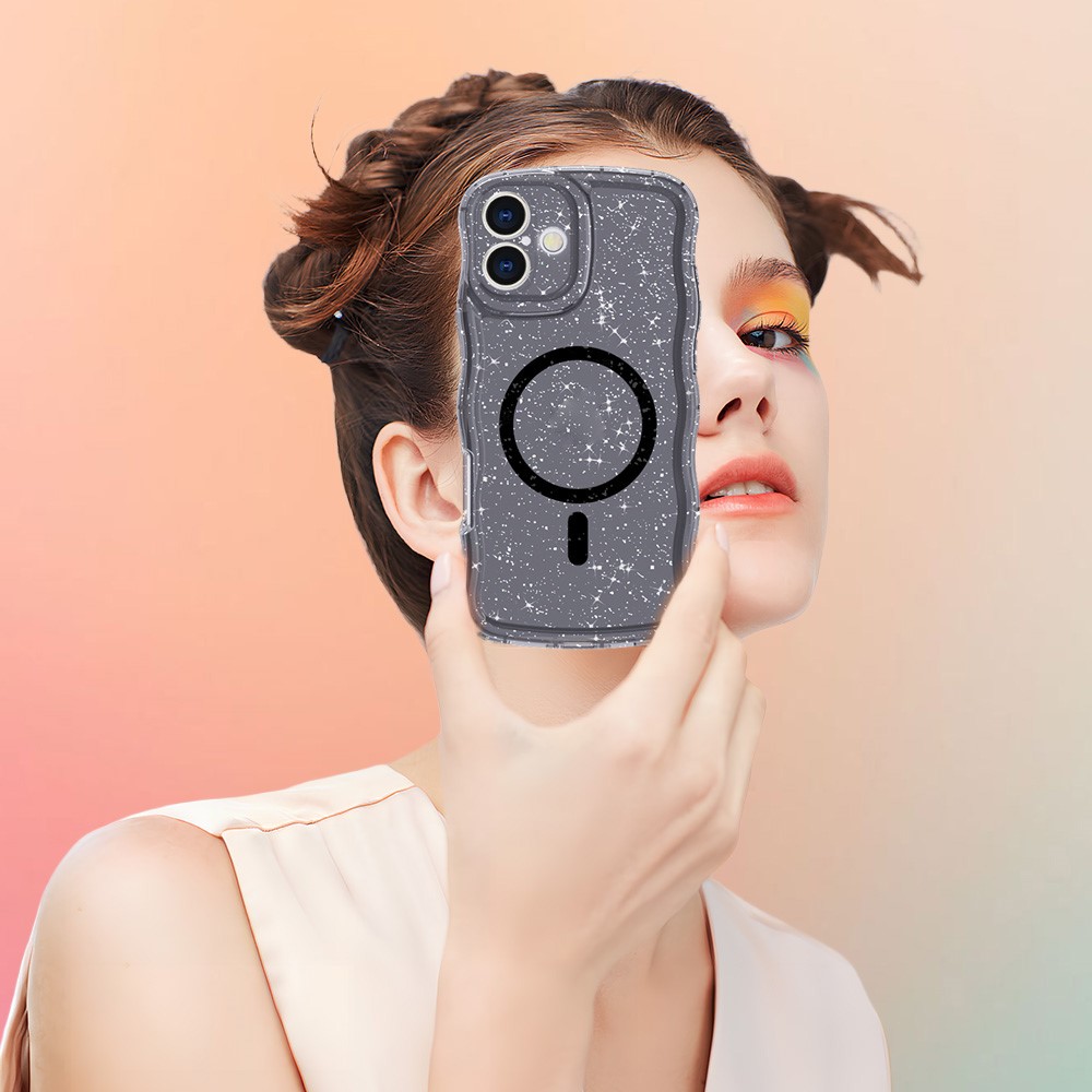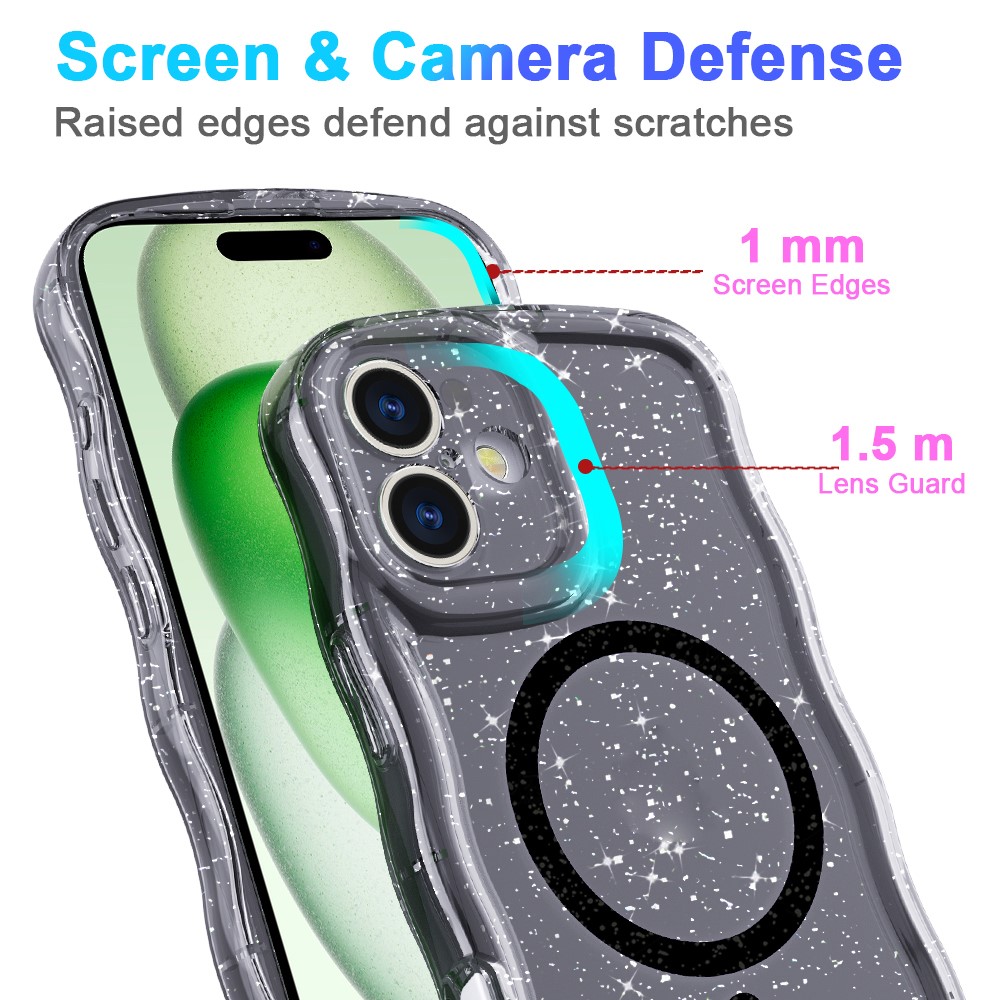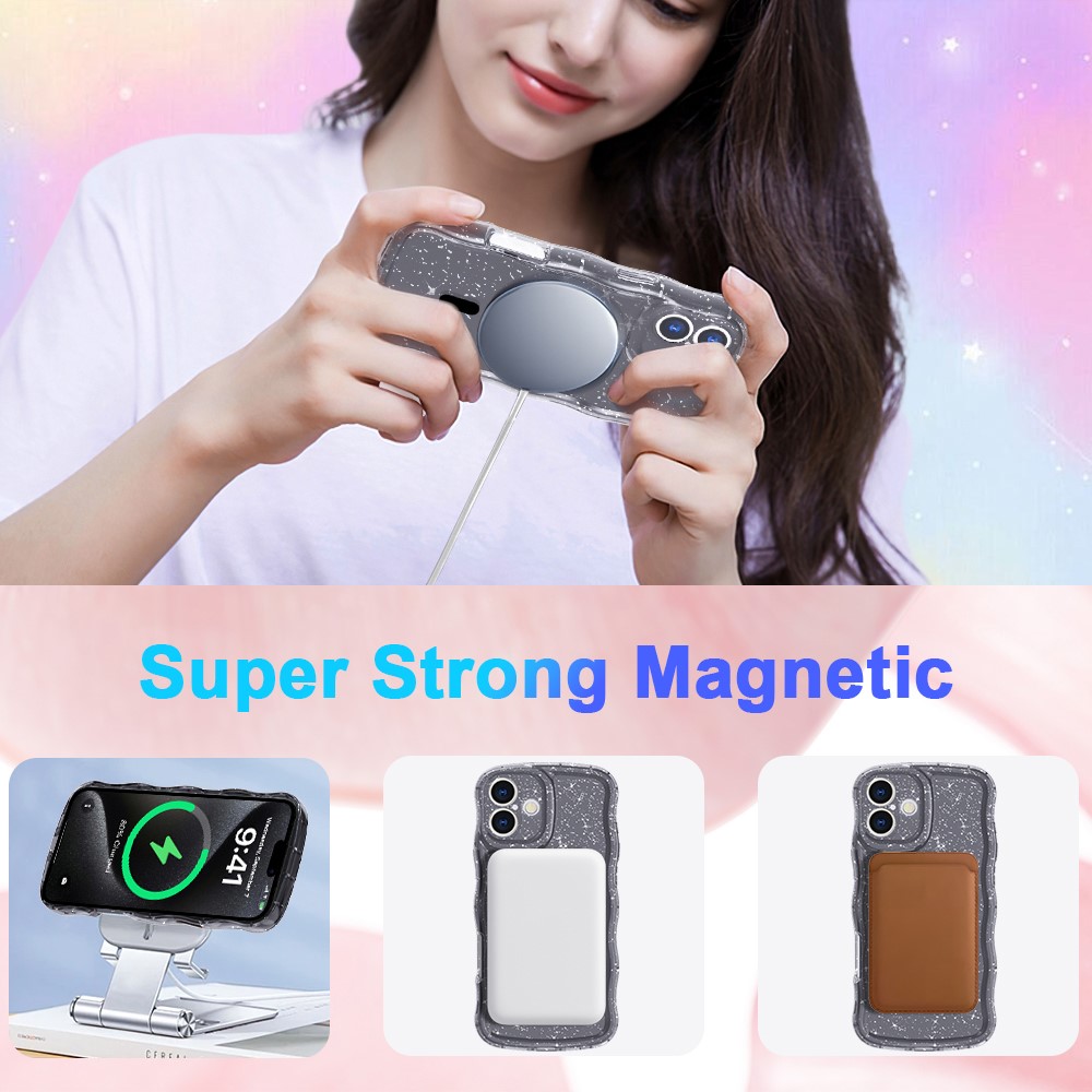 - Wave Edge Glitter Design Features a stylish wave-shaped frame with embedded glitter or vibrant patterns, adding a fashionable and eye-catching touch to your phone