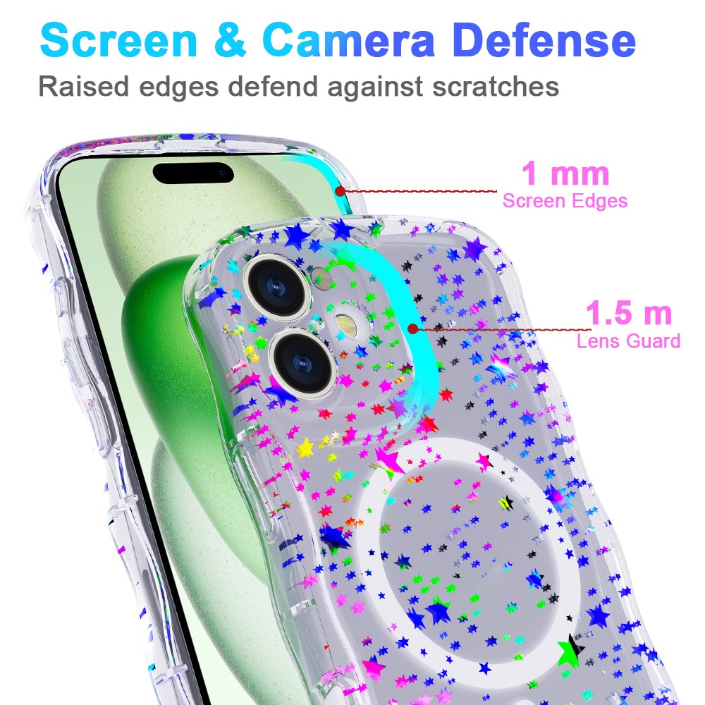 - Wave Edge Glitter Design Features a stylish wave-shaped frame with embedded glitter or vibrant patterns, adding a fashionable and eye-catching touch to your phone