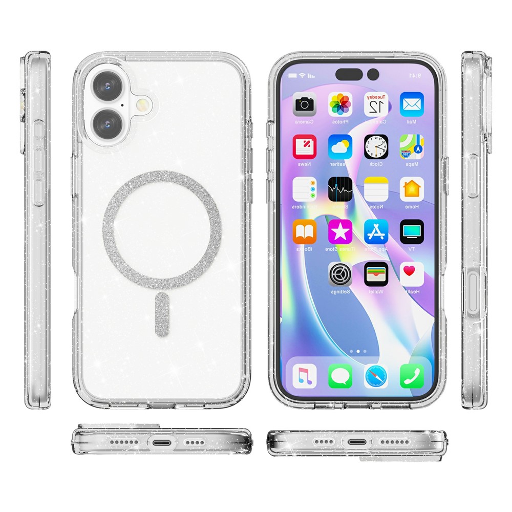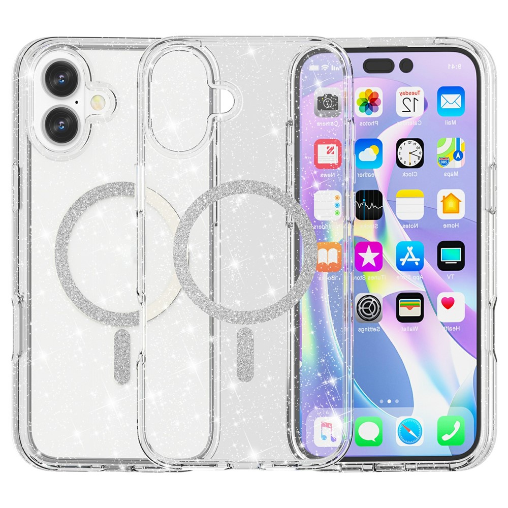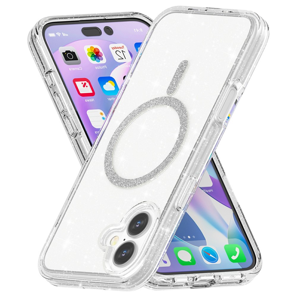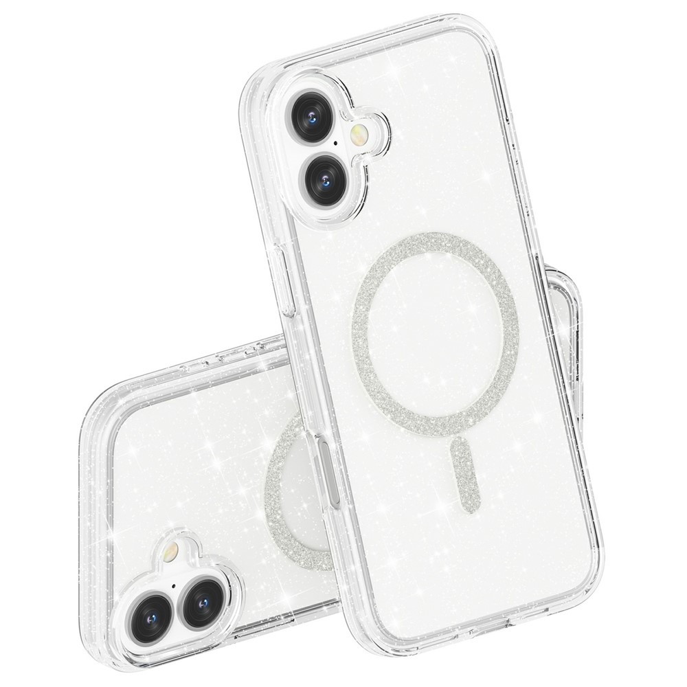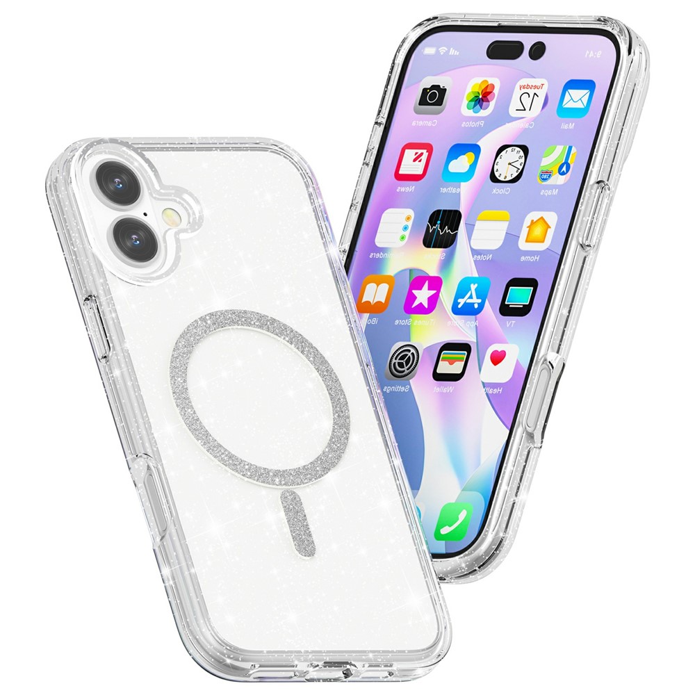 For iPhone 16 Plus Phone Case Compatible with MagSafe Glitter PC + TPU Hybrid Shockproof Cover – White