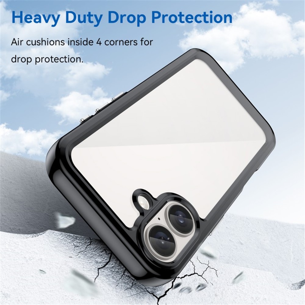 • For iPhone 16 Plus Phone Case WANLONFENG XC Series TPU Acrylic Cover with Tempered Glass (Big Lens Hole) - Transparent Grey