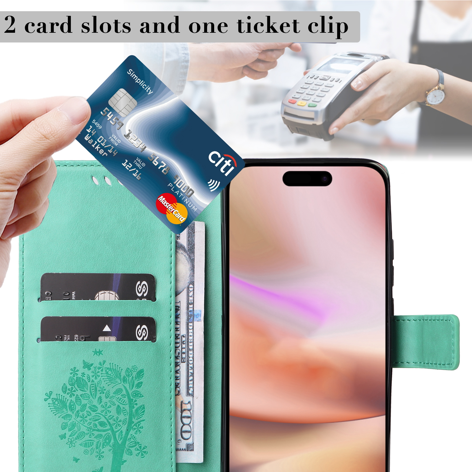 • Elegant Pattern Imprinted Features a stunning cat and tree pattern imprinted design on the front cover and the inner card slots area, adding a touch of luxury and uniqueness