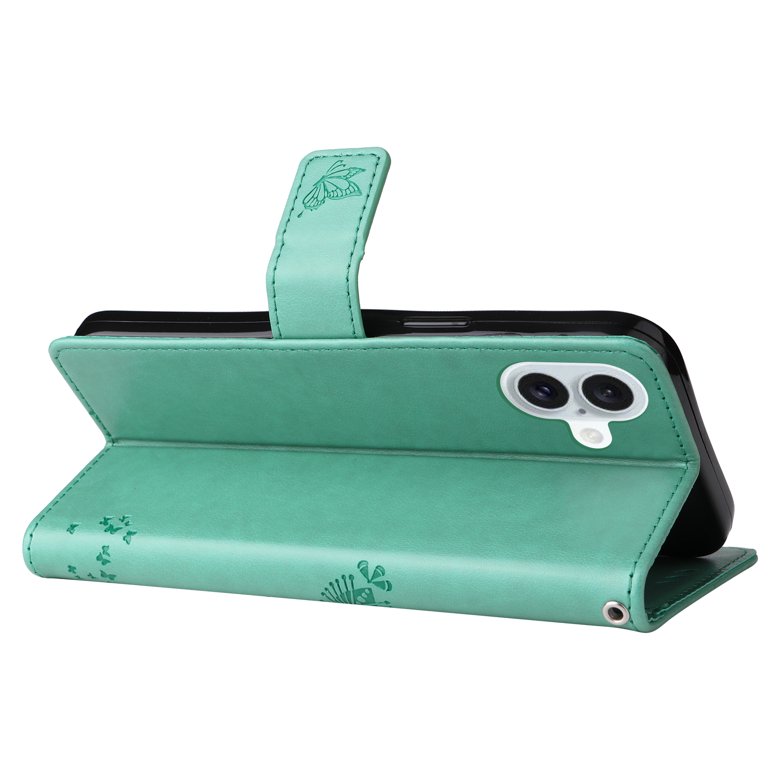For iPhone 16 Plus Phone Case with Stand Cat Tree Pattern Leather Wallet Mobile Cover – Green