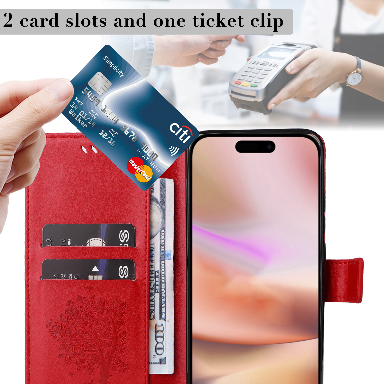 - Elegant Pattern Imprinted Features a stunning cat and tree pattern imprinted design on the front cover and the inner card slots area, adding a touch of luxury and uniqueness