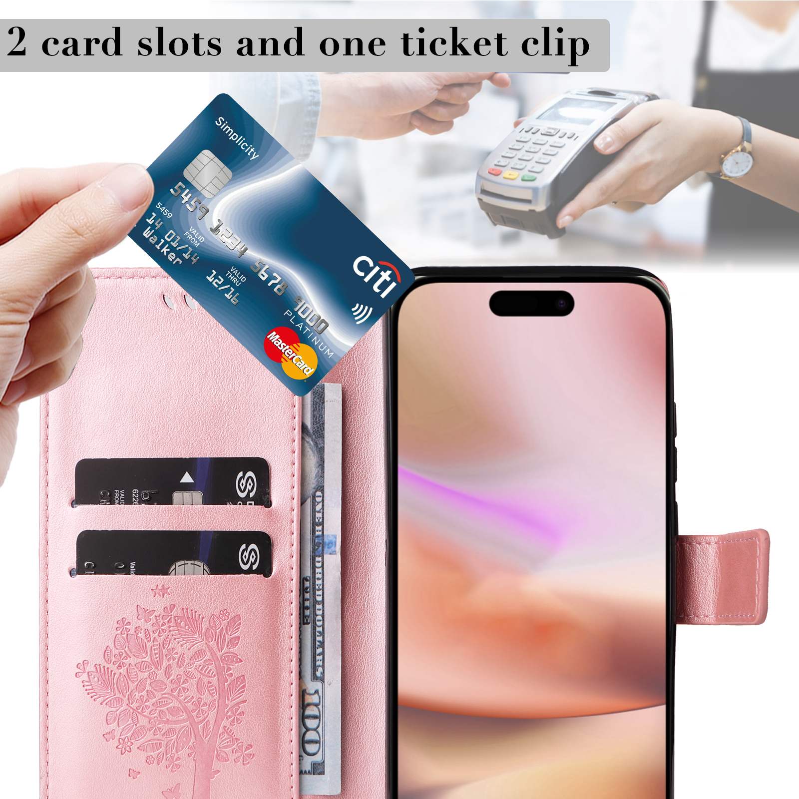 - Elegant Pattern Imprinted Features a stunning cat and tree pattern imprinted design on the front cover and the inner card slots area, adding a touch of luxury and uniqueness