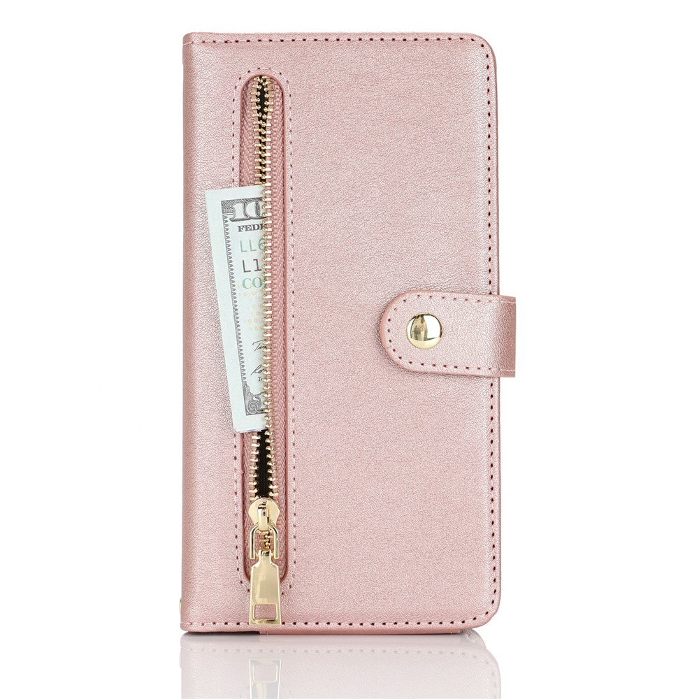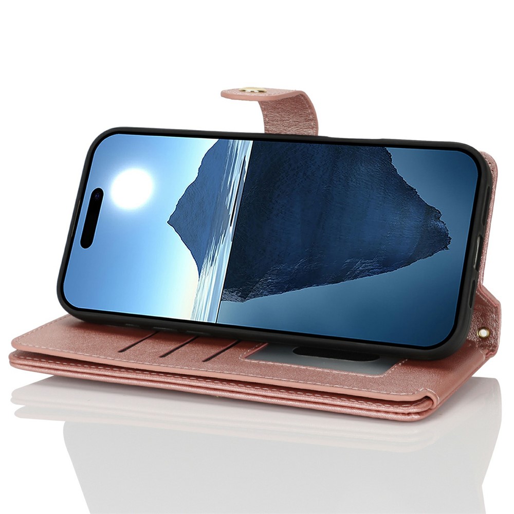 For iPhone 16 Plus Stand Case PU Leather Phone Cover with Straps / Zipper Wallet / Multiple Card Slots - Rose Gold $20.18