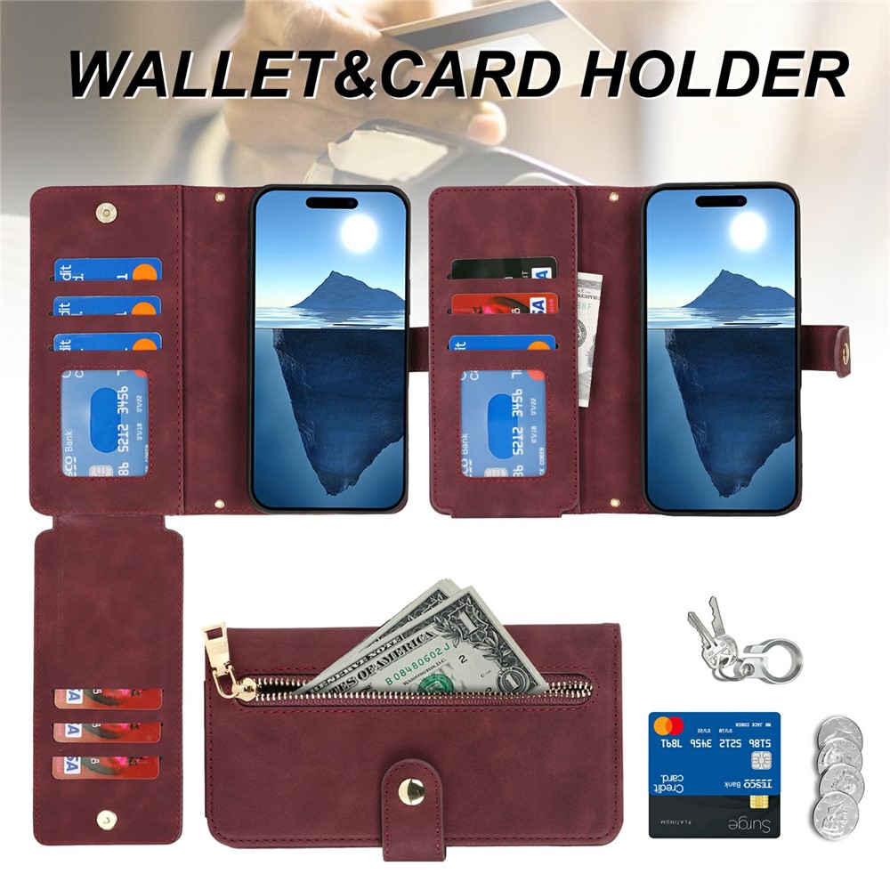 - All-in-One Wallet Function Designed with multiple card slots, a side cash compartment, and a convenient zipper pocket, allowing you to store bank cards, transit cards, IDs, coins, and cash securely in one place