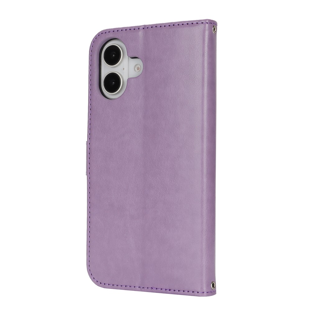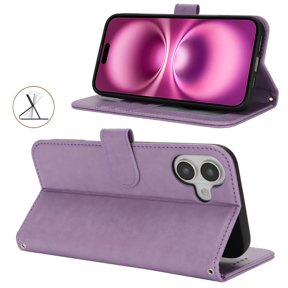 For iPhone 16 Plus Stand Case Textured Leather Wallet Phone Cover with Strap - Purple