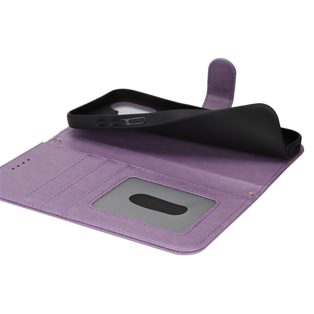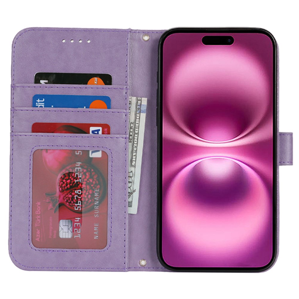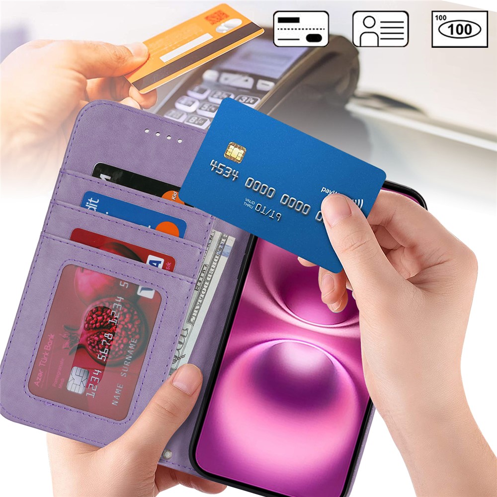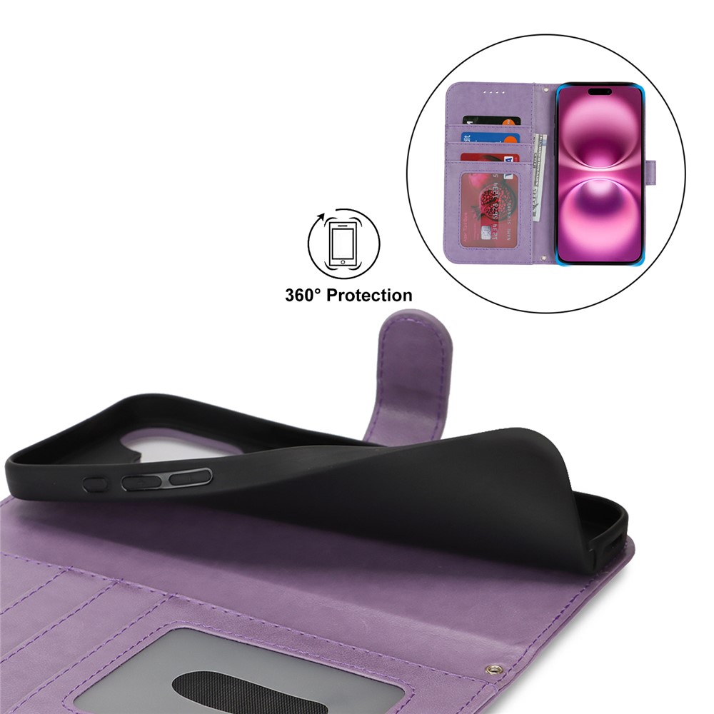 For iPhone 16 Plus Stand Case Textured Leather Wallet Phone Cover with Strap – Purple