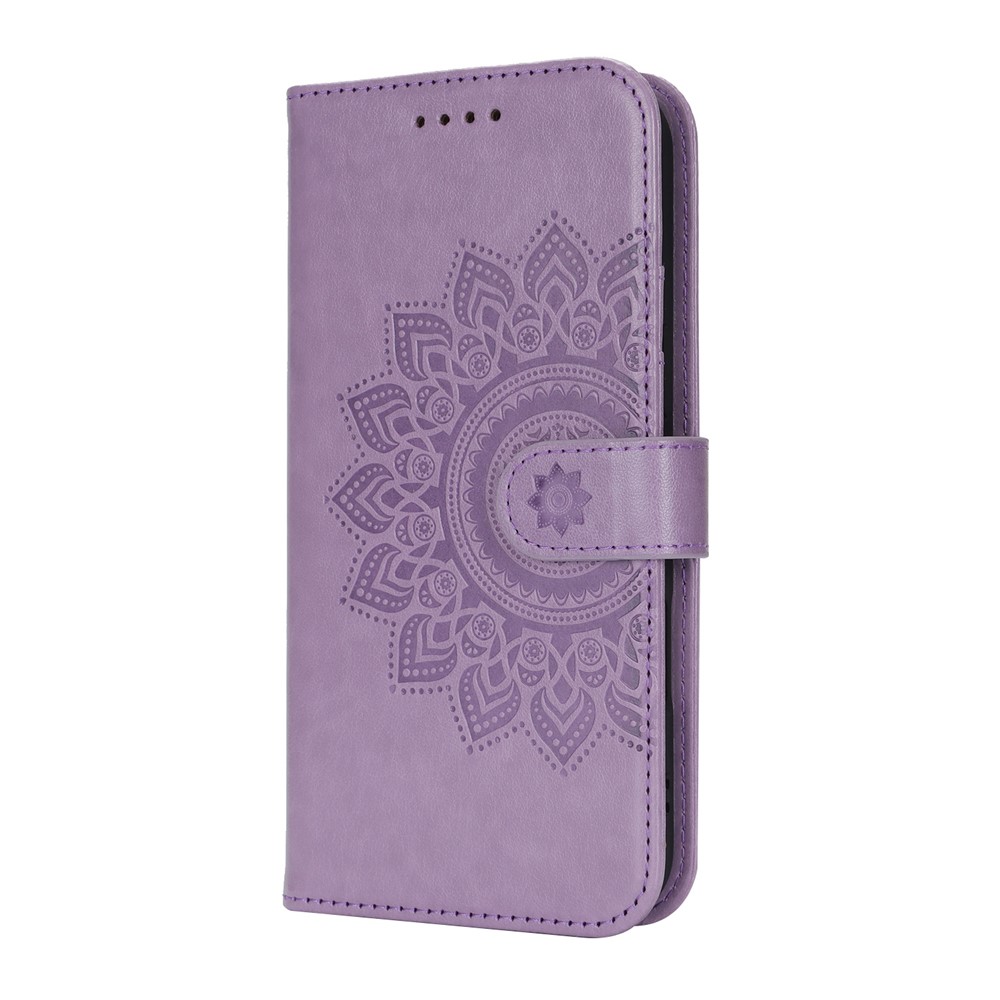 • For iPhone 16 Plus Stand Case Textured Leather Wallet Phone Cover with Strap - Dark Purple