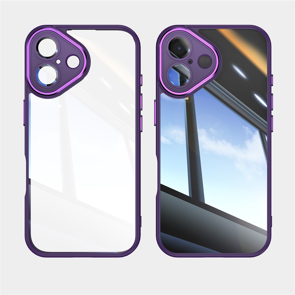 For iPhone 16 Plus TPU Case WANLONFENG Shockproof Clear Phone Cover with Tempered Glass Film – Dark Purple