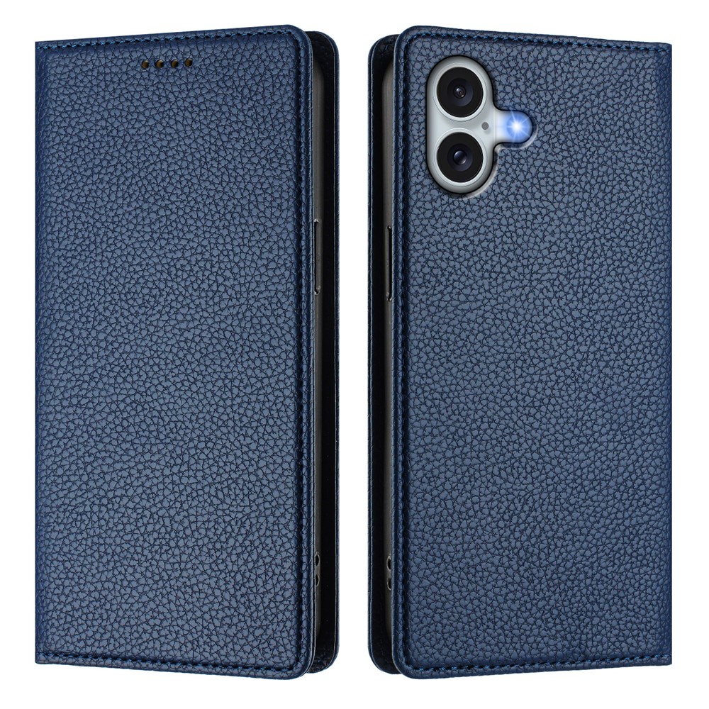 For iPhone 16 Plus Wallet Case RFID Blocking Litchi Texture Leather Mobile Cover – Dark Blue
