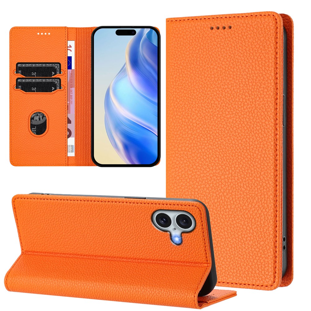 For iPhone 16 Plus Wallet Case RFID Blocking Litchi Texture Leather Mobile Cover – Orange