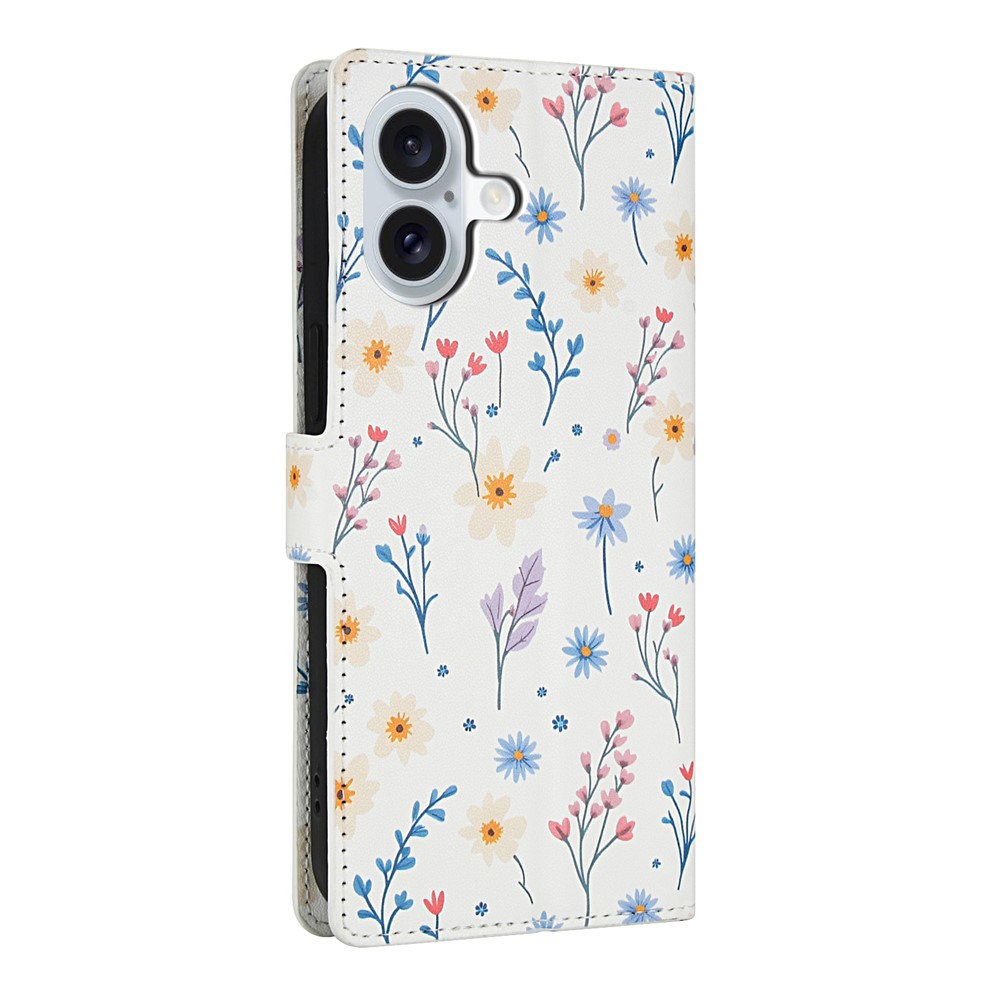 • For iPhone 16 Plus Wallet Case Rhombic Floral Design Leather Flip Phone Cover with Strap - A1