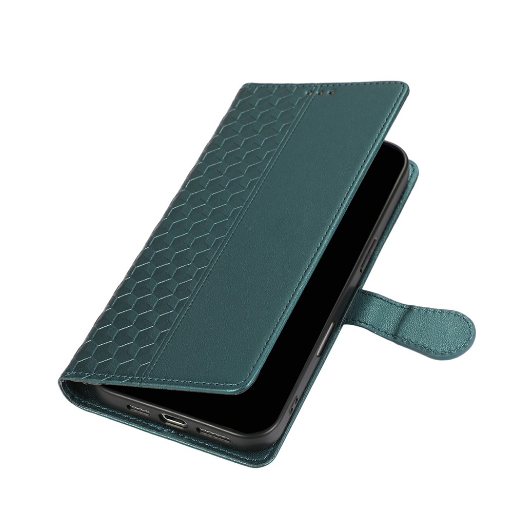 - Stylish 3D Rhombus Grid Design & Premium Material Features a 3D rhombus grid imprinted pattern, crafted from high-quality PU leather and durable TPU, combining luxurious feel with long-lasting durability