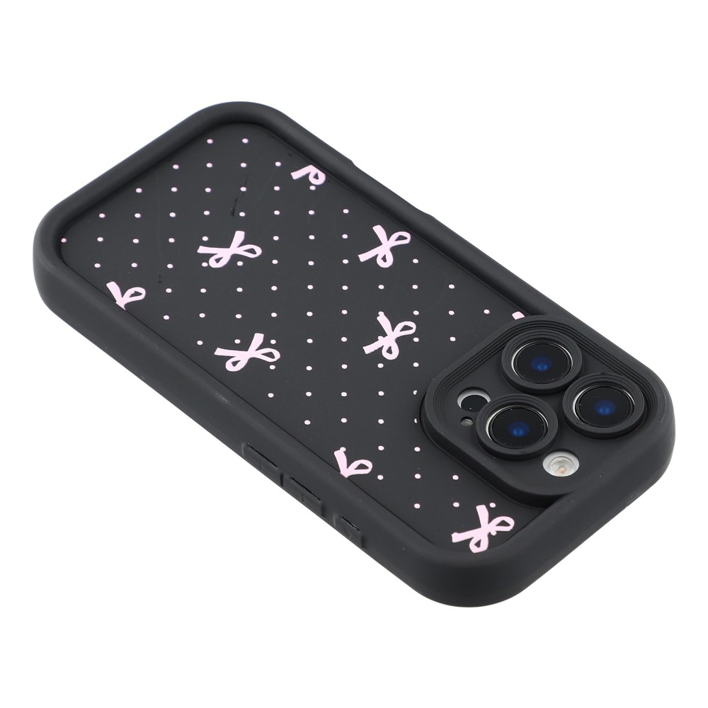 • For iPhone 16 Pro Case Aesthetic Pattern Print TPU Shockproof Phone Cover - Bow / Black