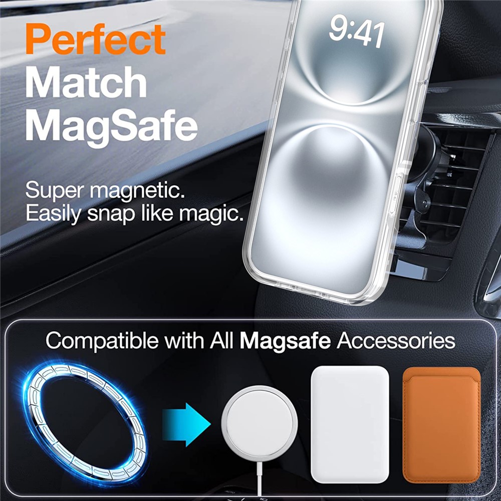 • MagSafe Compatible Built-in magnet ring ensures stable alignment and is compatible with MagSafe wireless charging and magnetic accessories