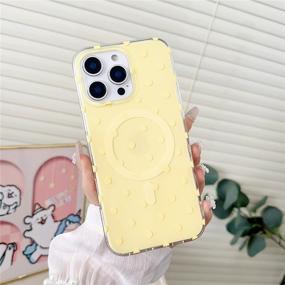 For iPhone 16 Pro Case Polka Dot Pattern TPU + PC Phone Cover Compatible with MagSafe – Yellow