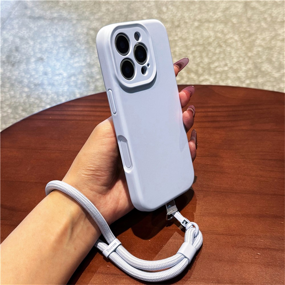 For iPhone 16 Pro Case Precise Cutouts Liquid Silicone + PC Phone Cover with Wrist Strap - Baby Blue $18.18