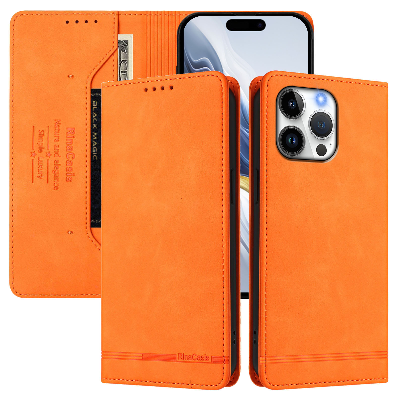 For iPhone 16 Pro Case RINACASIS RC23 RFID Blocking Wallet Stand PU Leather Phone Cover - Orange $16.82
