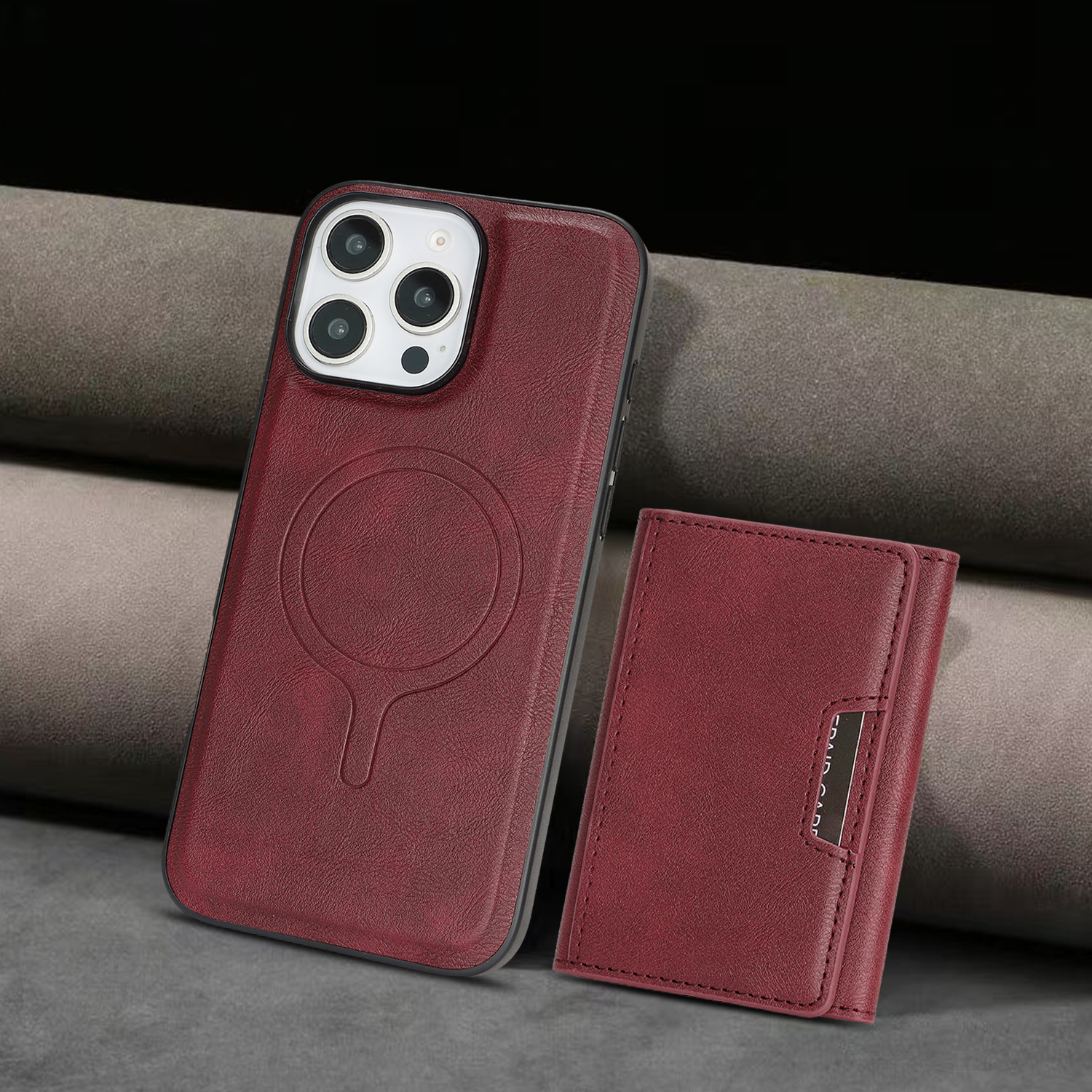 • MagSafe Compatible Supports for MagSafe accessories and wireless charging, featuring a minimalist magnetic leather bi-fold design with card holder functionality.