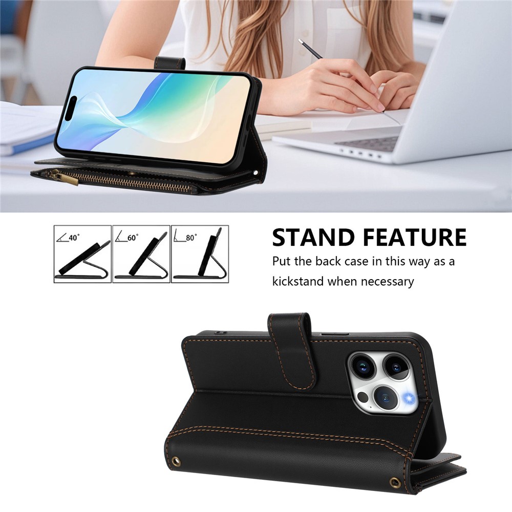 - Zipper Wallet Pocket With up to 9 card slots, 1 cash slot and a zippered purse, you can carry your ID credit cards, cash, coin and other little stuff easily