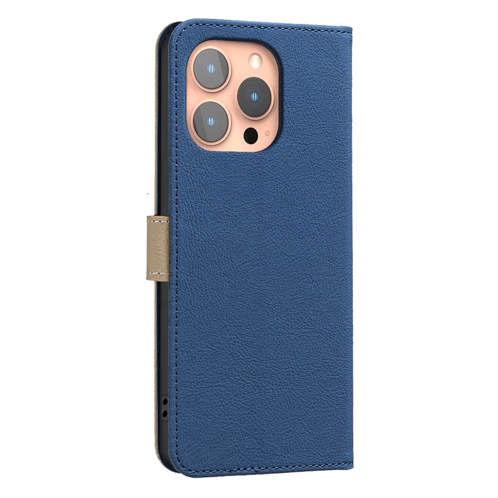 For iPhone 16 Pro Leather Case BINFEN COLOR BF36 Floral Pattern Phone Cover RFID Blocking Wallet Stand - Dark Blue