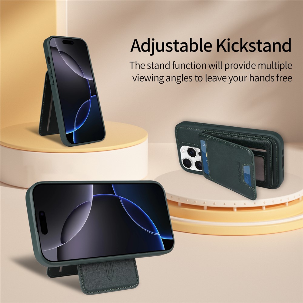 For iPhone 16 Pro Magnetic Case BETOPNICE RFID Blocking Leather Phone Back Cover with Detachable Card Bag - Green $19.06