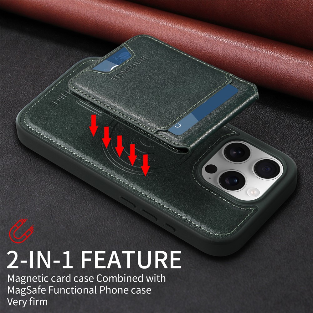 For iPhone 16 Pro Magnetic Case BETOPNICE RFID Blocking Leather Phone Back Cover with Detachable Card Bag – Green