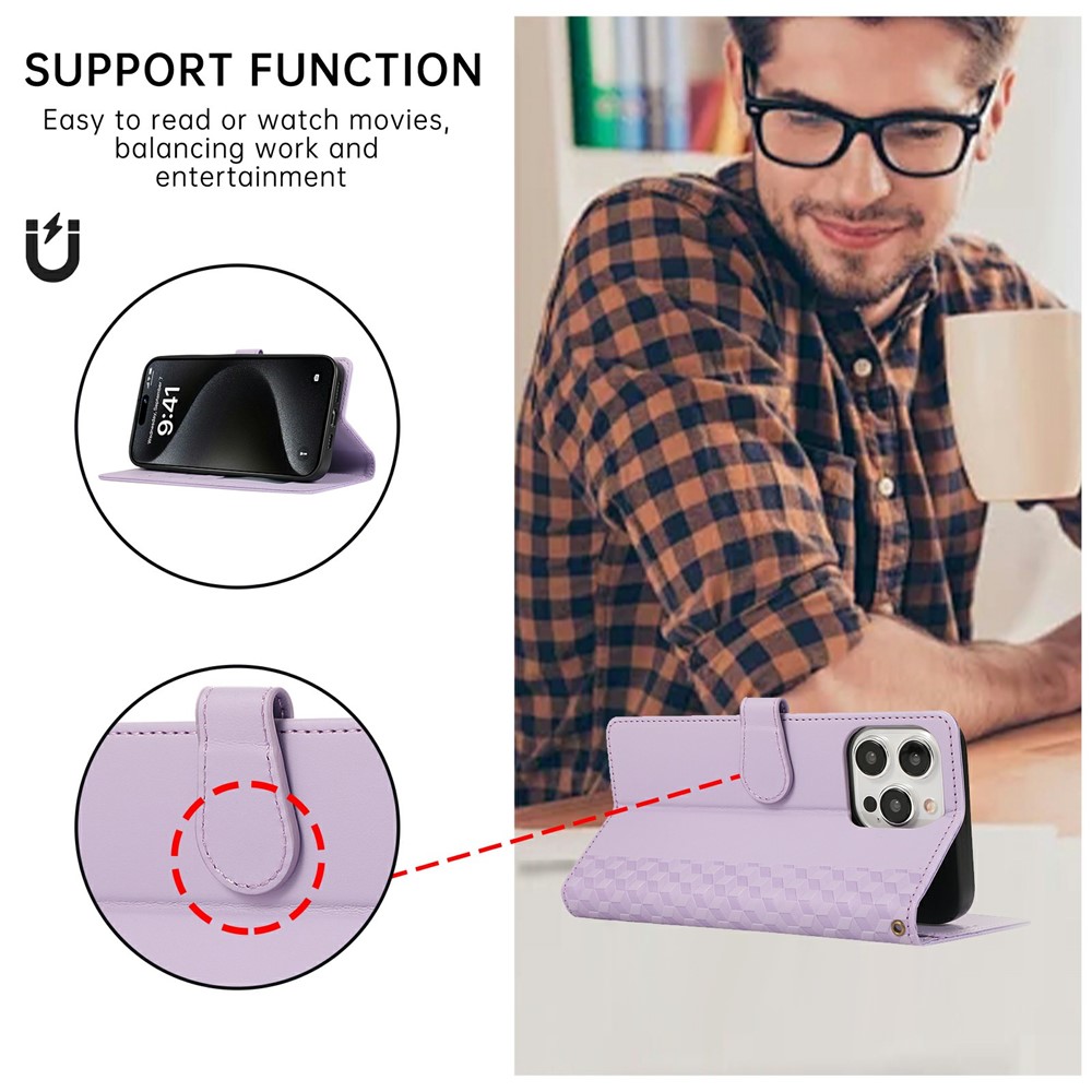 - Stylish 3D Rhombus Grid Design & Premium Material Features a 3D rhombus grid imprinted pattern, crafted from high-quality PU leather and durable TPU, combining luxurious feel with long-lasting durability