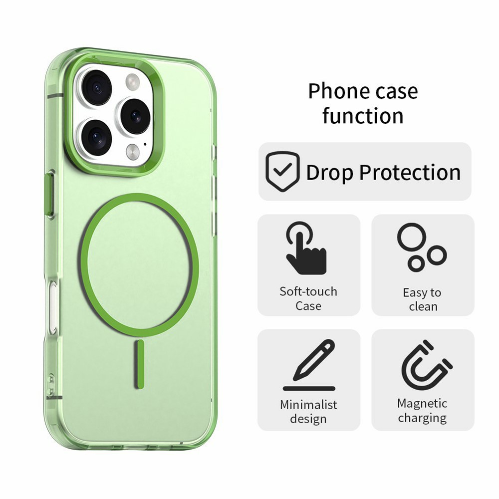 For iPhone 16 Pro Max Case Candy Color PC + TPU + PET Phone Cover Compatible with MagSafe - Green $14.87
