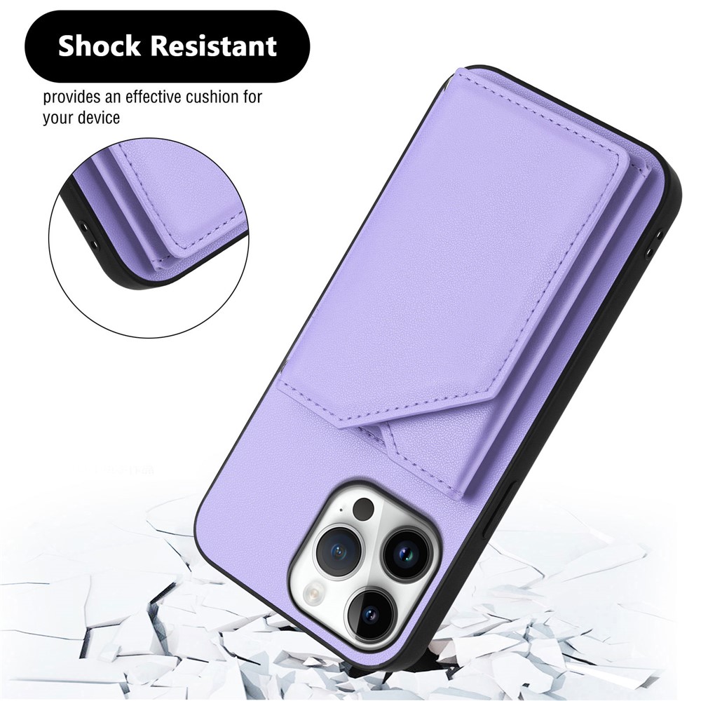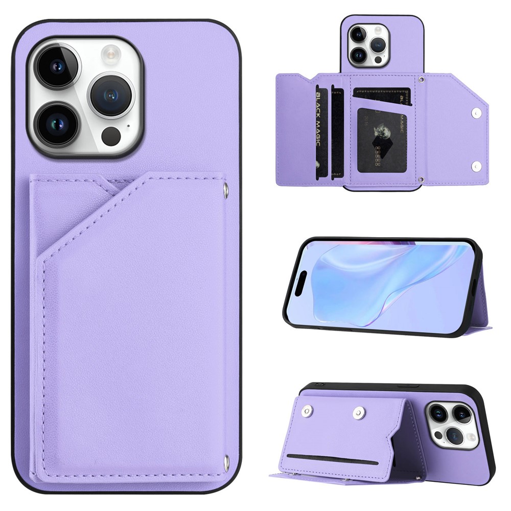 For iPhone 16 Pro Max Case Card Holder Kickstand Skin-Touch Phone Cover with Wrist Strap - Light Purple $15.58