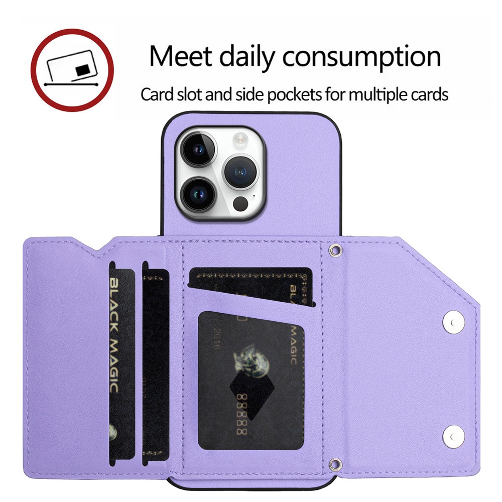 For iPhone 16 Pro Max Case Card Holder Kickstand Skin-Touch Phone Cover with Wrist Strap – Light Purple