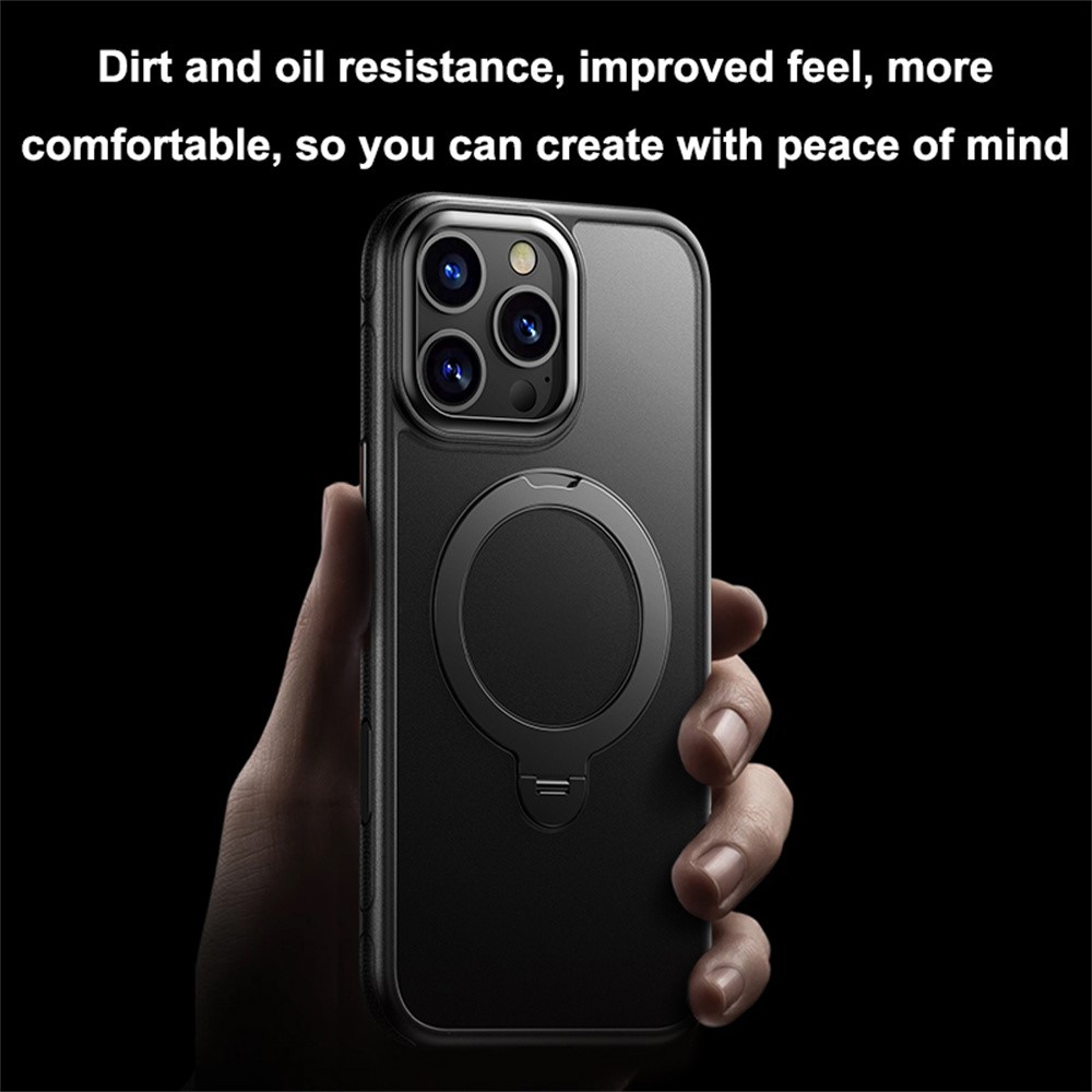 - Hidden Foldable Metal Kickstand Features a built-in foldable metal stand with 360° rotation and tactile gear clicks, allowing effortless angle adjustment for hands-free viewing—perfect for watching videos.