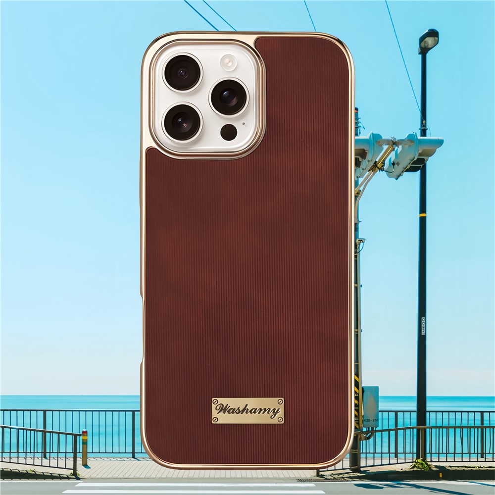 For iPhone 16 Pro Max Case Compatible with MagSafe Electroplating Frame PU Leather PC TPU Phone Cover - Brown $21.13