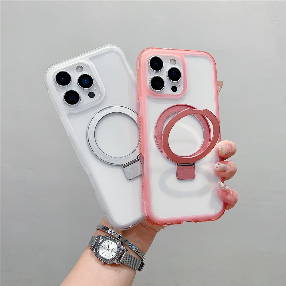 • For iPhone 16 Pro Max Case Compatible with MagSafe Kickstand Clear TPU PC Phone Back Cover - Pink