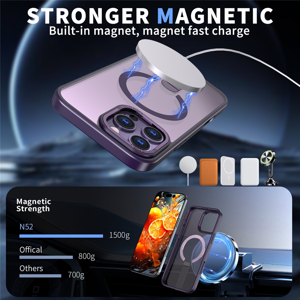- Strong Magnetic Force Built with an N52-grade magnetic ring delivering up to 1500g of magnetic strength, this case is compatible with MagSafe chargers and magnetic car mounts