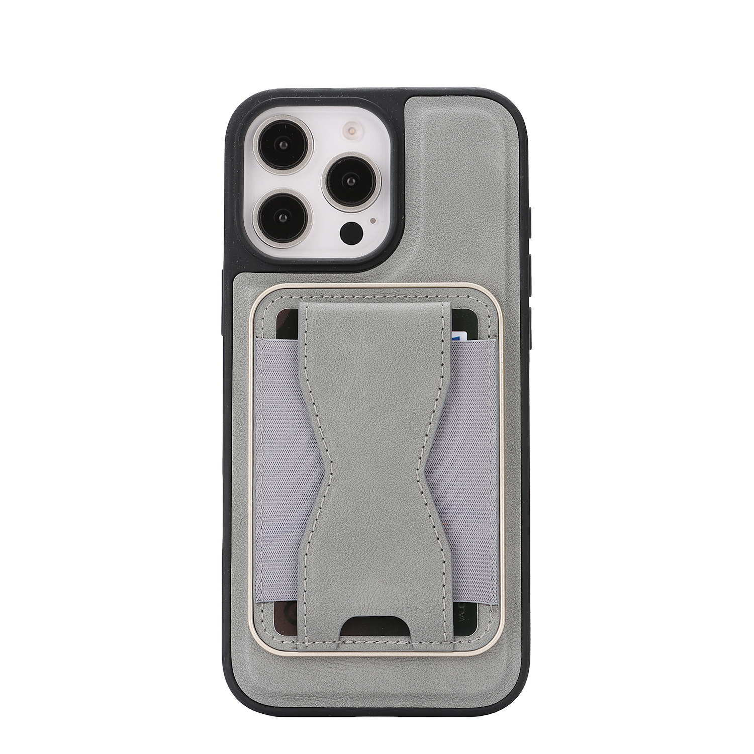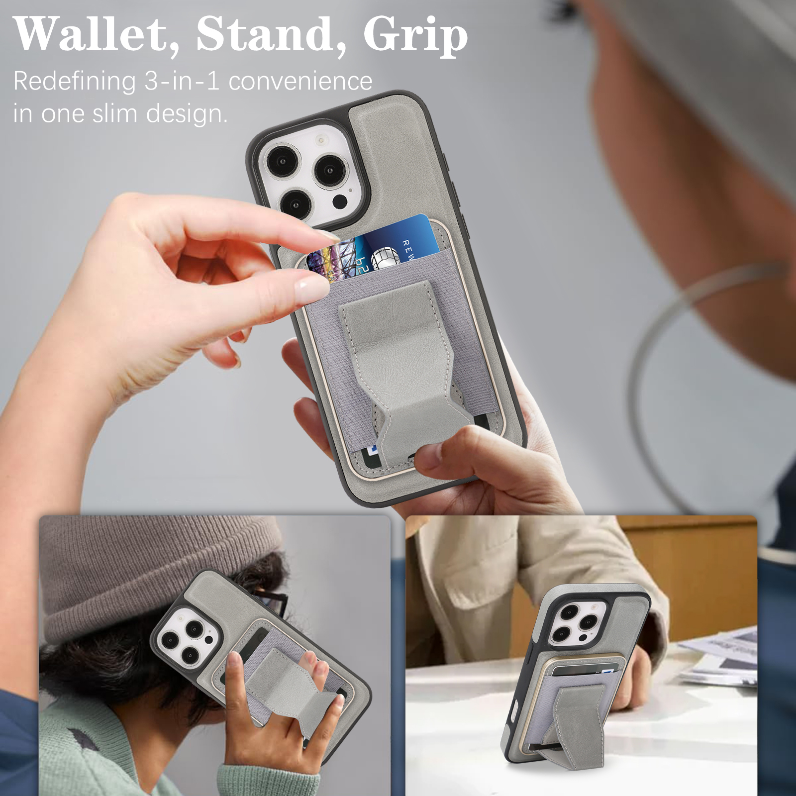 For iPhone 16 Pro Max Case Compatible with MagSafe Leather Back Phone Cover with Detachable Card Holder Kickstand – Light Grey