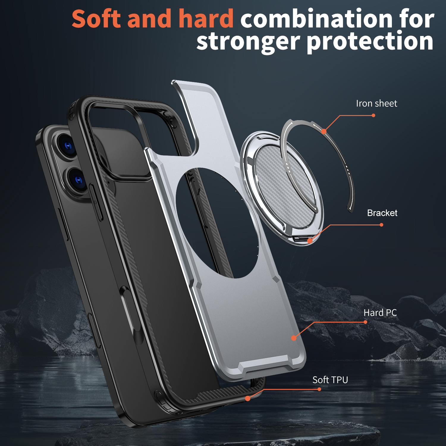 For iPhone 16 Pro Max Case Compatible with MagSafe TPU + PC Phone Cover with Damping Rotating Stand – Grey