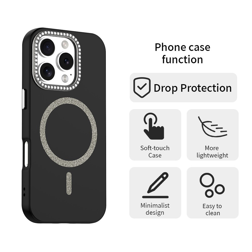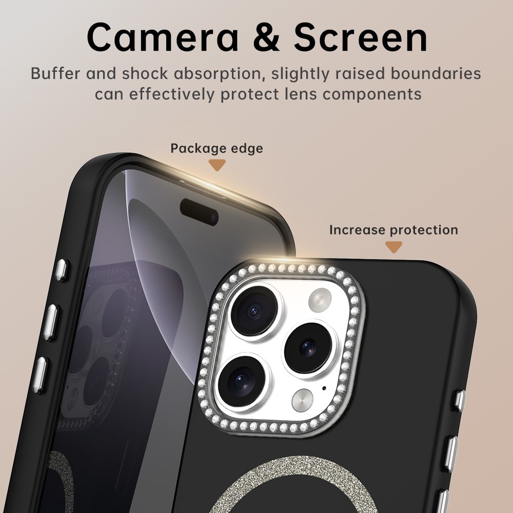 - Rhinestone Lens Frame The lens frame is adorned with sparkling rhinestones, adding a luxurious and eye-catching touch to your phone while protecting the camera