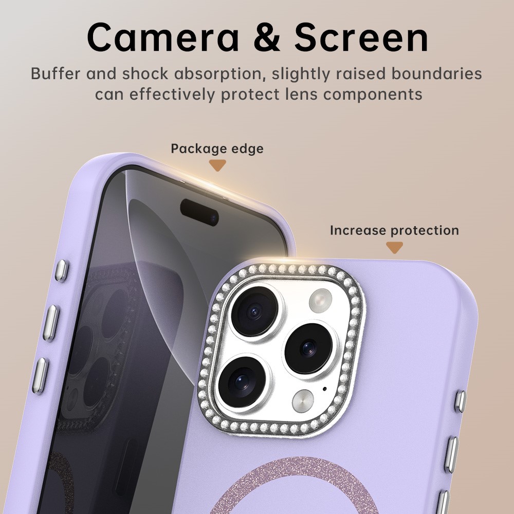 - Rhinestone Lens Frame The lens frame is adorned with sparkling rhinestones, adding a luxurious and eye-catching touch to your phone while protecting the camera