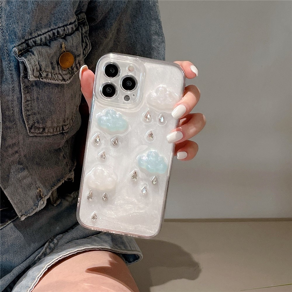 - Elegant 3D Cloud & Rhinestone Design Features epoxy craftsmanship with pearlescent powder and stylish 3D cloud patterns adorned with rhinestones, adding a fashionable and luxurious touch to your device.